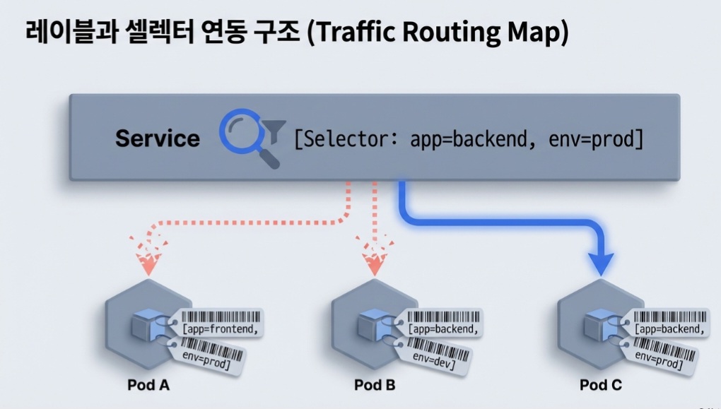 쿠버네티스의 철학은 '이름'이 아닌 '레이블(Label)'로 리소스를 관리하는 것입니다.